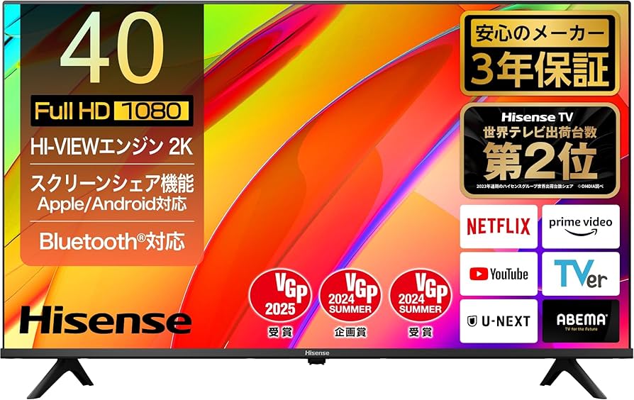 - テレビ・映像機器 > テレビ > ハイセンス 液晶テレビ 40V型 /YouTube等対応 40A4N 未開封 Amazon | ハイセンス 40V型 40A4N フルハイビジョン 液晶 テレビ